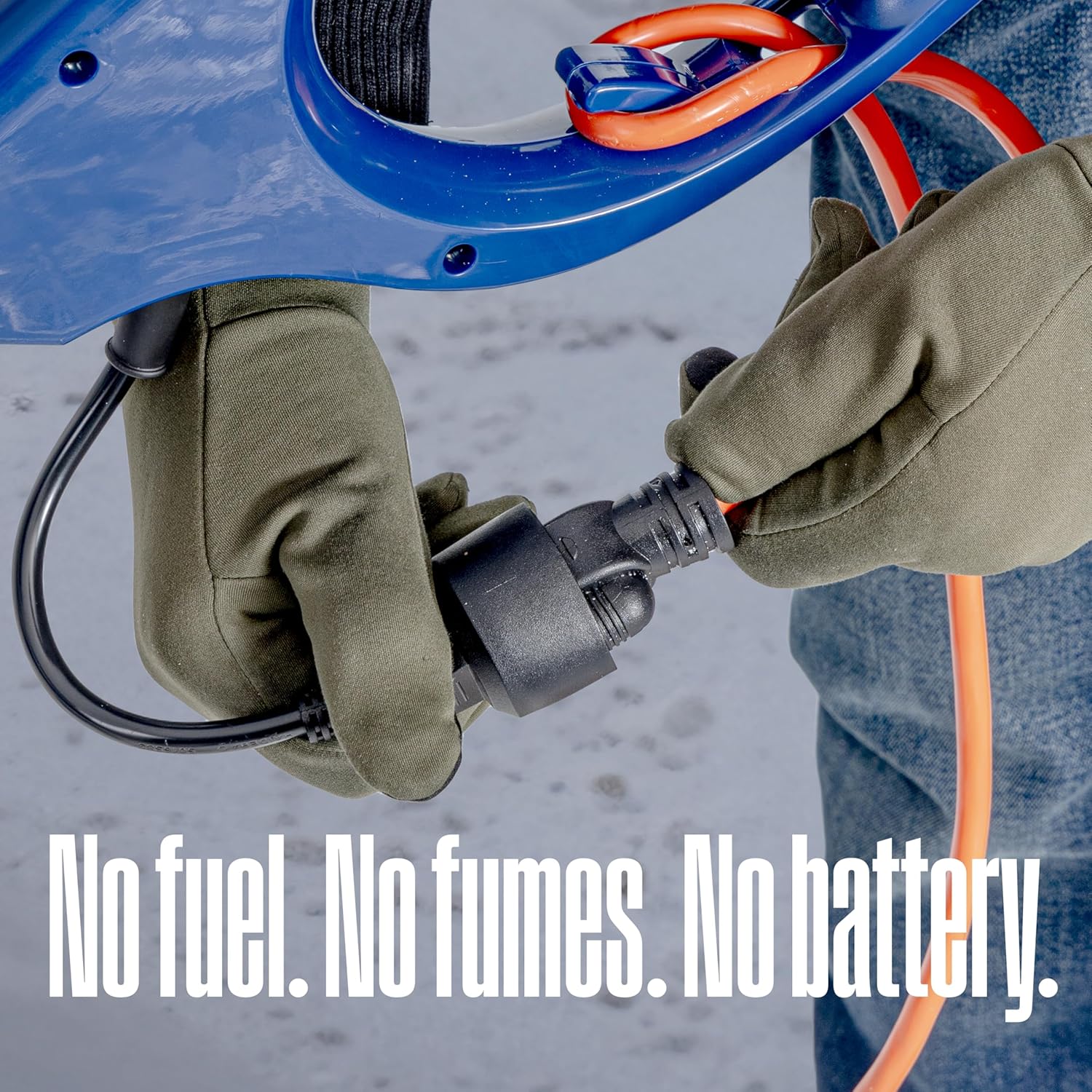 ❄️ Endless Electric Energy: Corded electric motors deliver unlimited power whenever needed. No battery charging or refueling, and no fumes, engine maintenance or hard starting in the cold. It’s also much quieter for neighborhood use versus gas engines